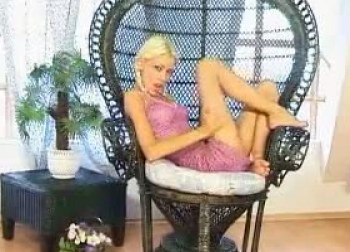 Blond babe onanerer i en stol