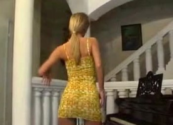 Blond babe lejer med sig selv ved klaveret
