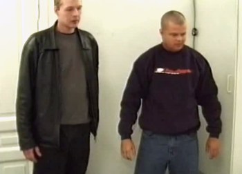 Glatbarberet teenage blondine Lisa får alle huller penetreret af to mænd