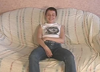 Korthåret amatør teenager Rachel masturberer på sofaen