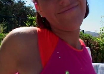 Rødhåret dulle Alyssa West med store babser kneppes på sofaen