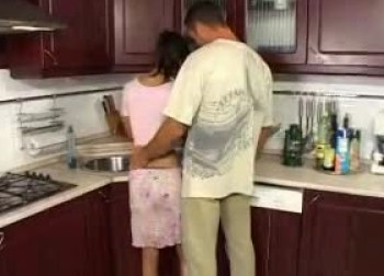 Uartig teenager Kelly Kline forfører en ældre fyr i køkkenet