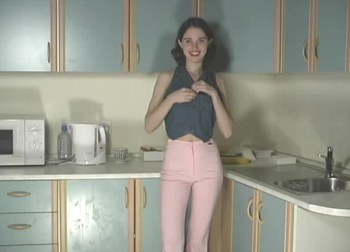 Dejlige Tanya smider tøjet og onanerer i køkkenet