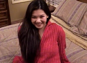 Sød lille asiat med store patter sutter en pik og giver et bryst job