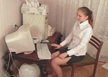 Hot skolepige Tami fingererer både fisse og røv foran computeren